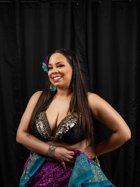 Halle was born in St. Louis, Missouri. Growing up, she briefly explored ballet, but she discovered her love for belly dance at the age of 10 during a family trip to Disney World. While dining at “Marrakesh”, a restaurant in Epcot, she had the chance to dance alongside a belly dancer, and she was instantly star-struck. From that moment, she eagerly asked her mom to enroll her in classes—a wish her supportive family wholeheartedly embraced.
